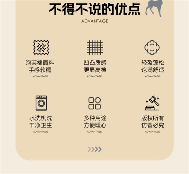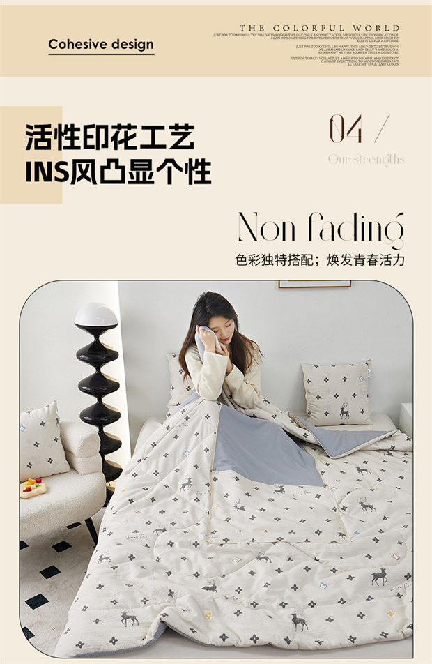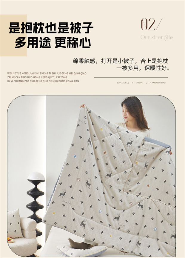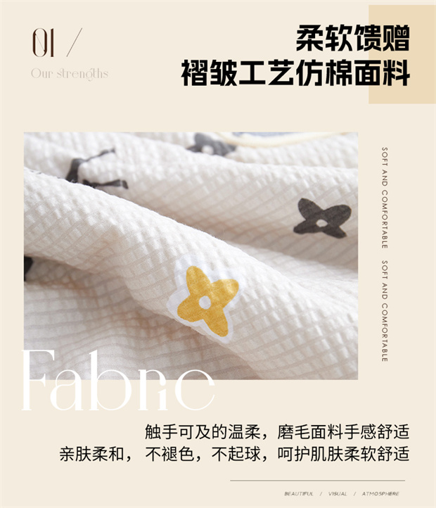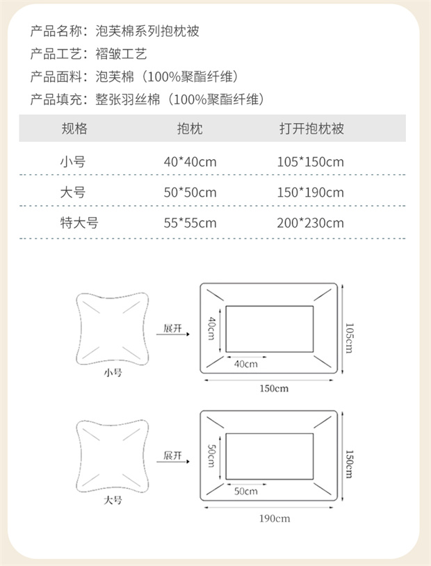 面料:泡芙棉 填充:整张羽丝棉 工艺:印花 尺寸:40*40cm 打开105*150cm 本品采用新款褶皱工艺仿棉面料! 面料柔软亲肤、透气细腻、手感软糯、层次分明;不是棉胜似棉! 色彩独特搭配;焕发青春活力! 活性印花工艺,ins风凸显个性!