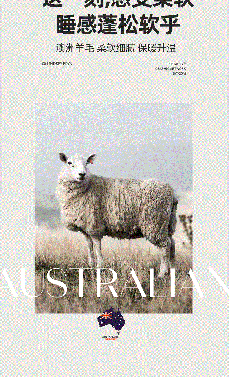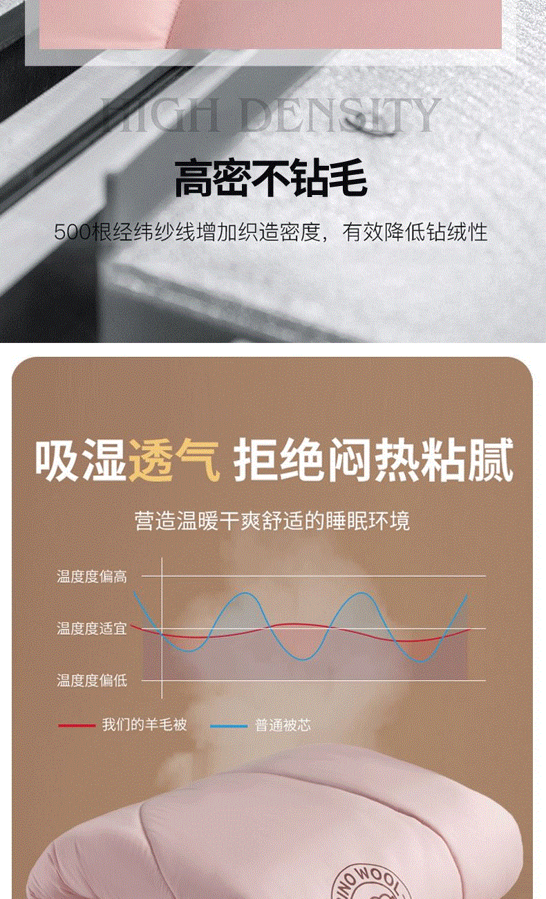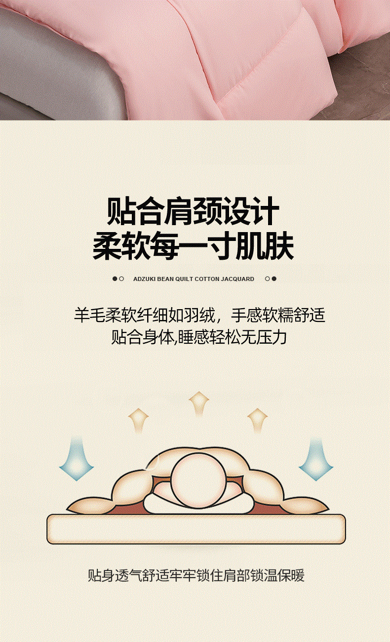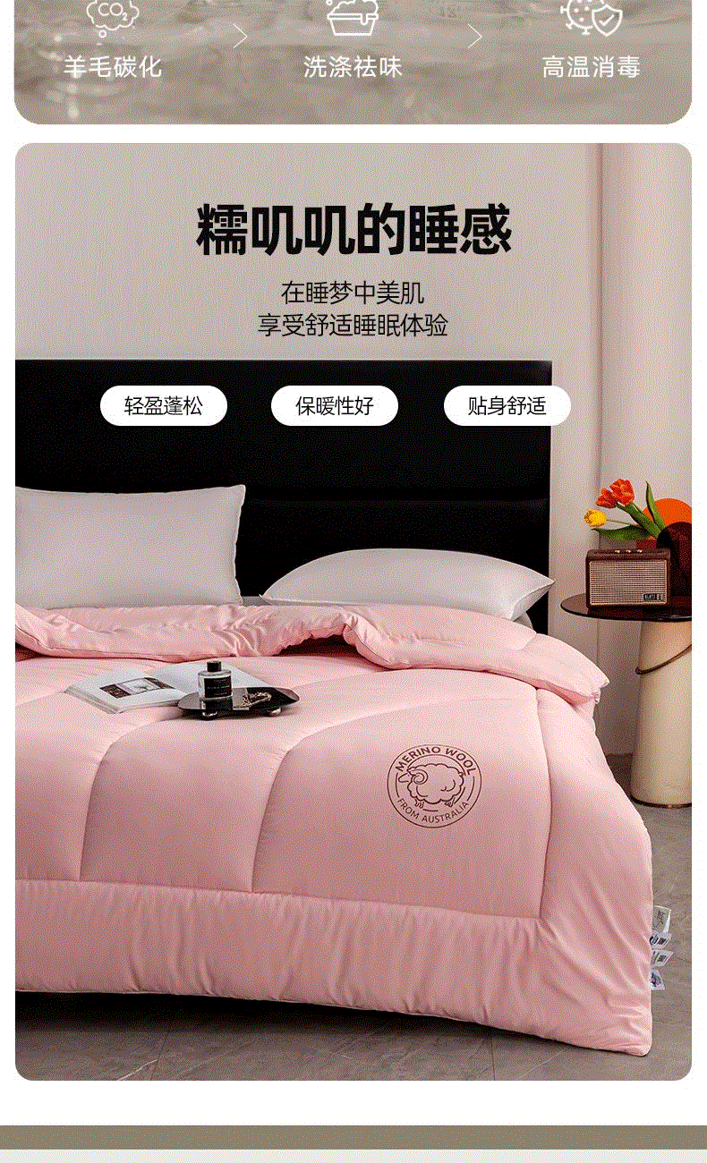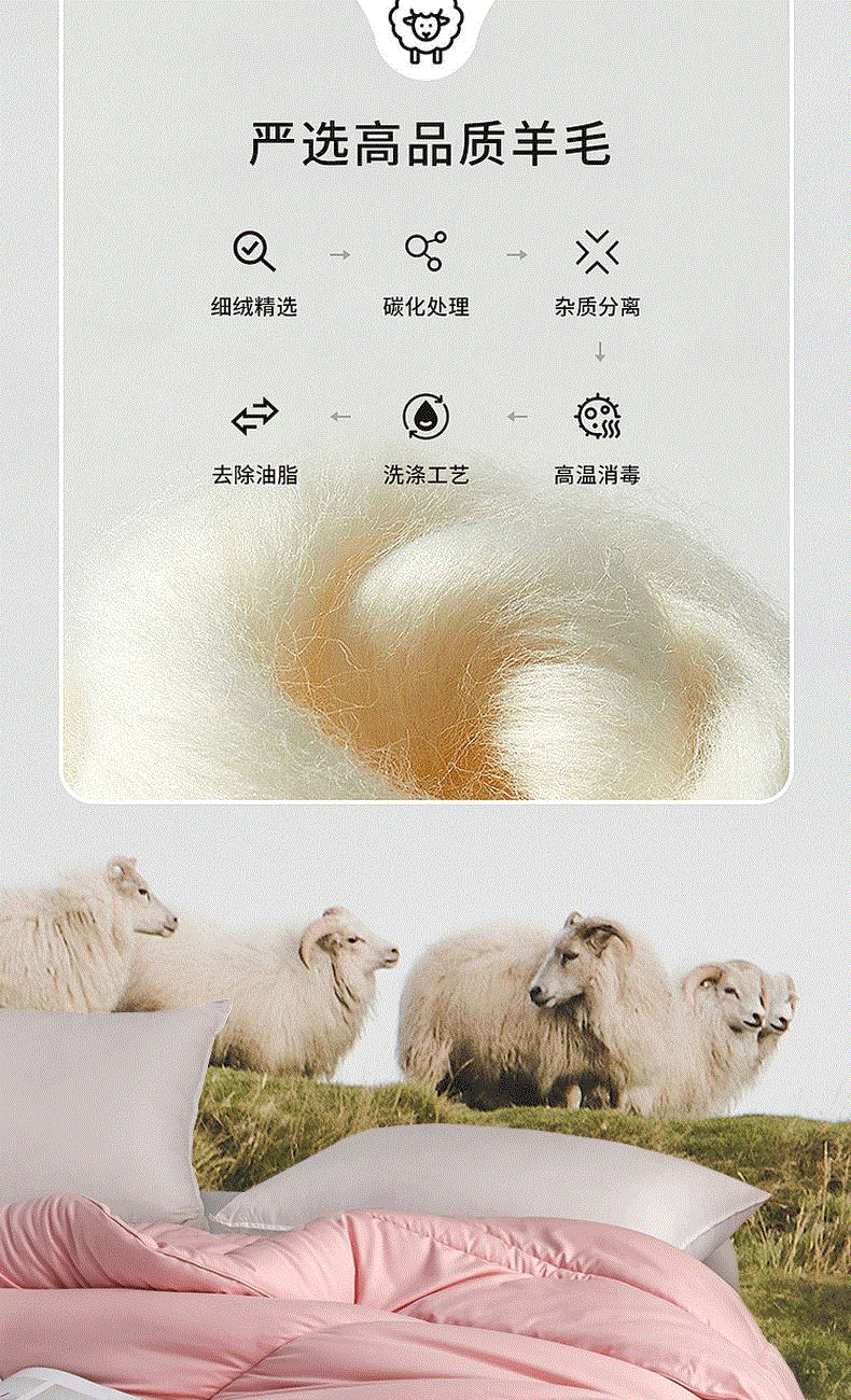 面料:柔赛丝 填充:澳洲羊毛 规格:2.0m 6斤 保暖舒适,乐享品质睡眠 多道工艺,羊毛洁净净化处理,褪去杂志,质地升华。 轻盈透气蓬松,蓄暖排湿,轻柔不压身。 加厚防雨布,防钻毛。